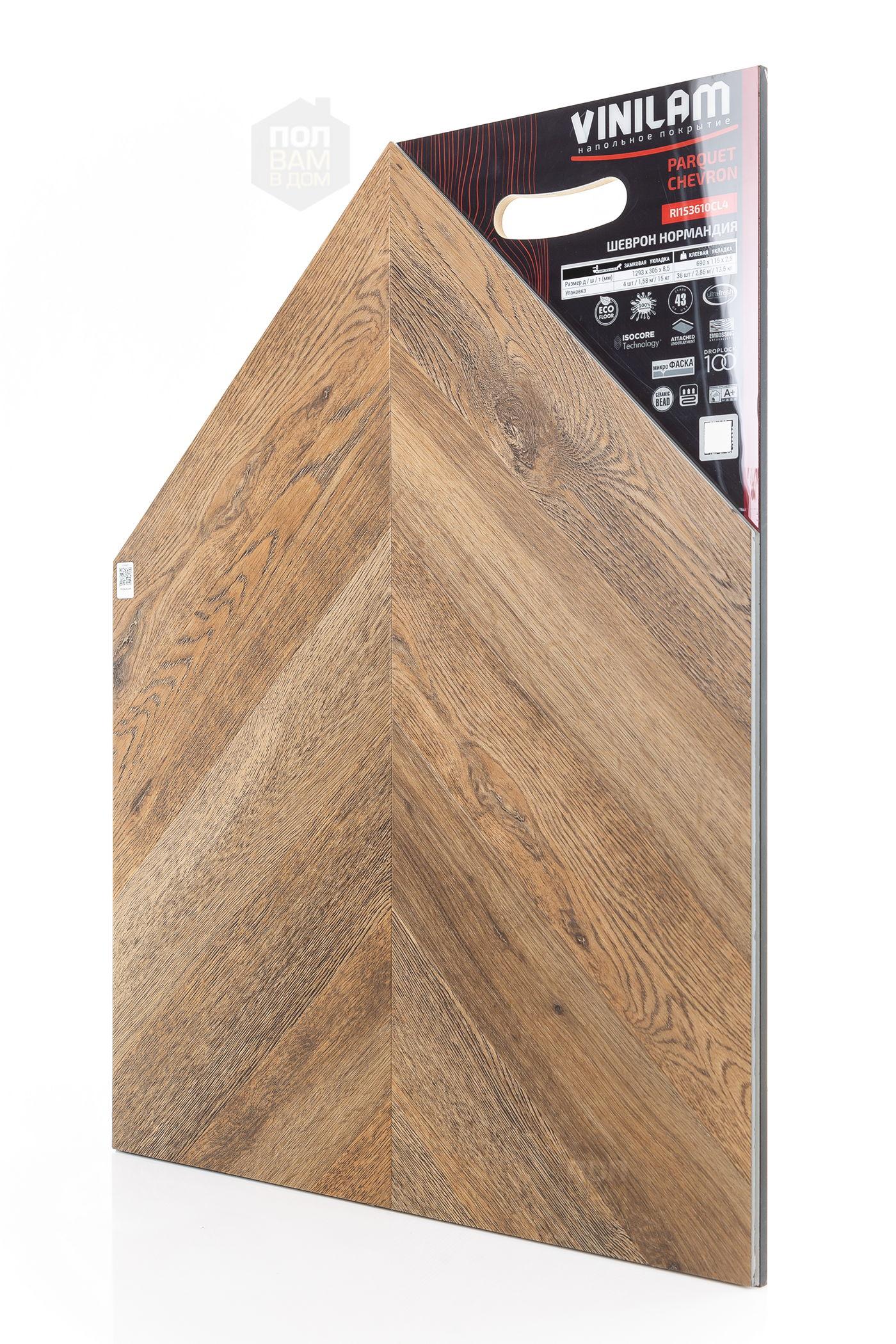 SPC ламинат Vinilam Нормандия - цена 7 990 руб. за квадратный метр. Это покрытие толщиной 8,5 мм, порода дерева - дуб, фаска с 4-х сторон. Брашированная поверхность SPC ламината имеет тёмный оттенок и полуматовый блеск. Для того, чтобы купить в Санкт-Петербурге SPC ламинат из коллекции Vinilam Parquet Chevron Нормандия, положите товар в корзину или свяжитесь с нами любым доступным способом. Товар есть в наличии.