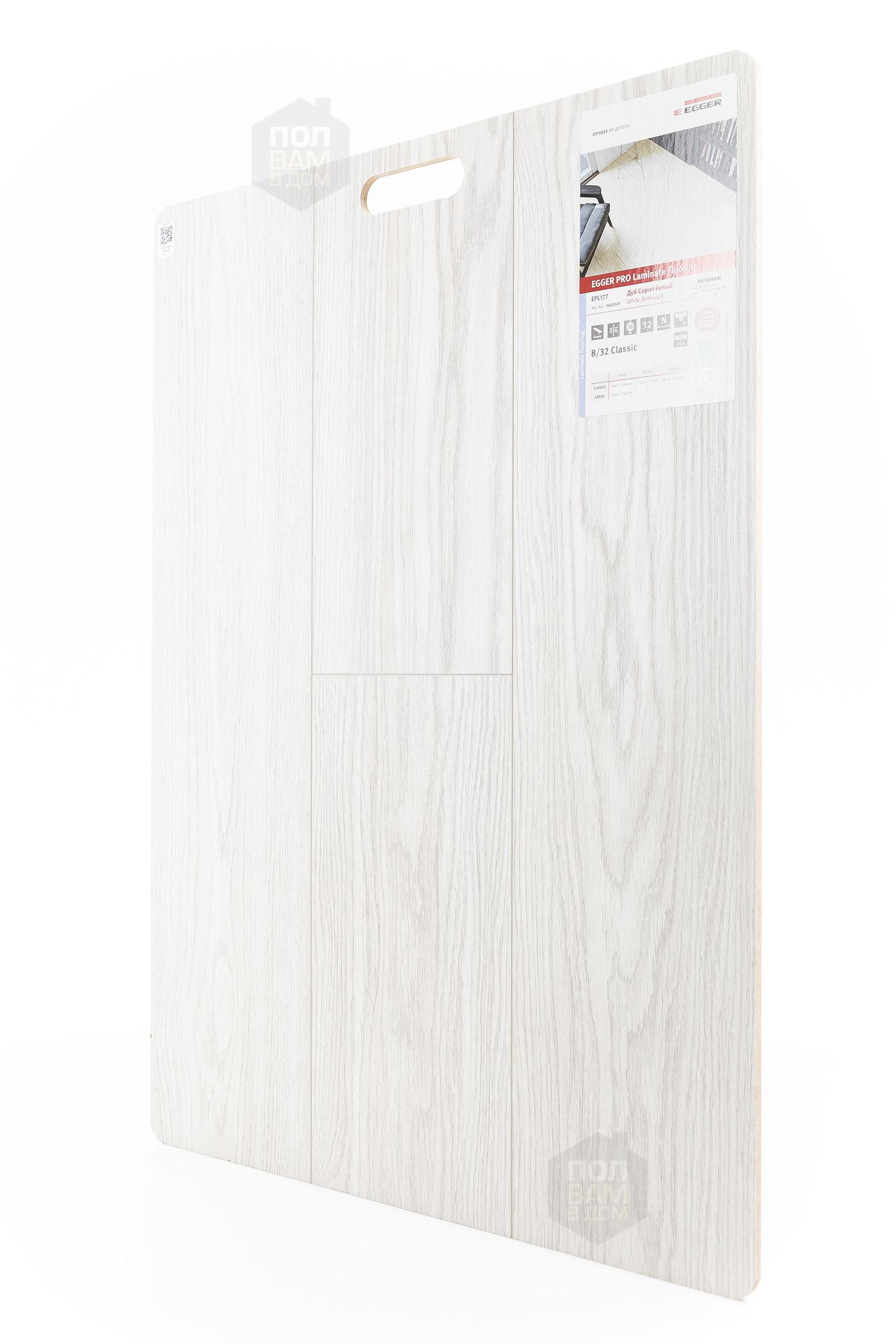 Ламинат EGGER Дуб Сория белый EPL177 - цена 1 110 руб. за квадратный метр. Это покрытие толщиной 8 мм, порода дерева - дуб, фаска с 4-х сторон. Брашированная поверхность ламината имеет светлый оттенок и матовый блеск. Для того, чтобы купить в Санкт-Петербурге ламинат из коллекции EGGER Classic 8/32 4V Дуб Сория белый EPL177, положите товар в корзину или свяжитесь с нами любым доступным способом. Товар есть в наличии.