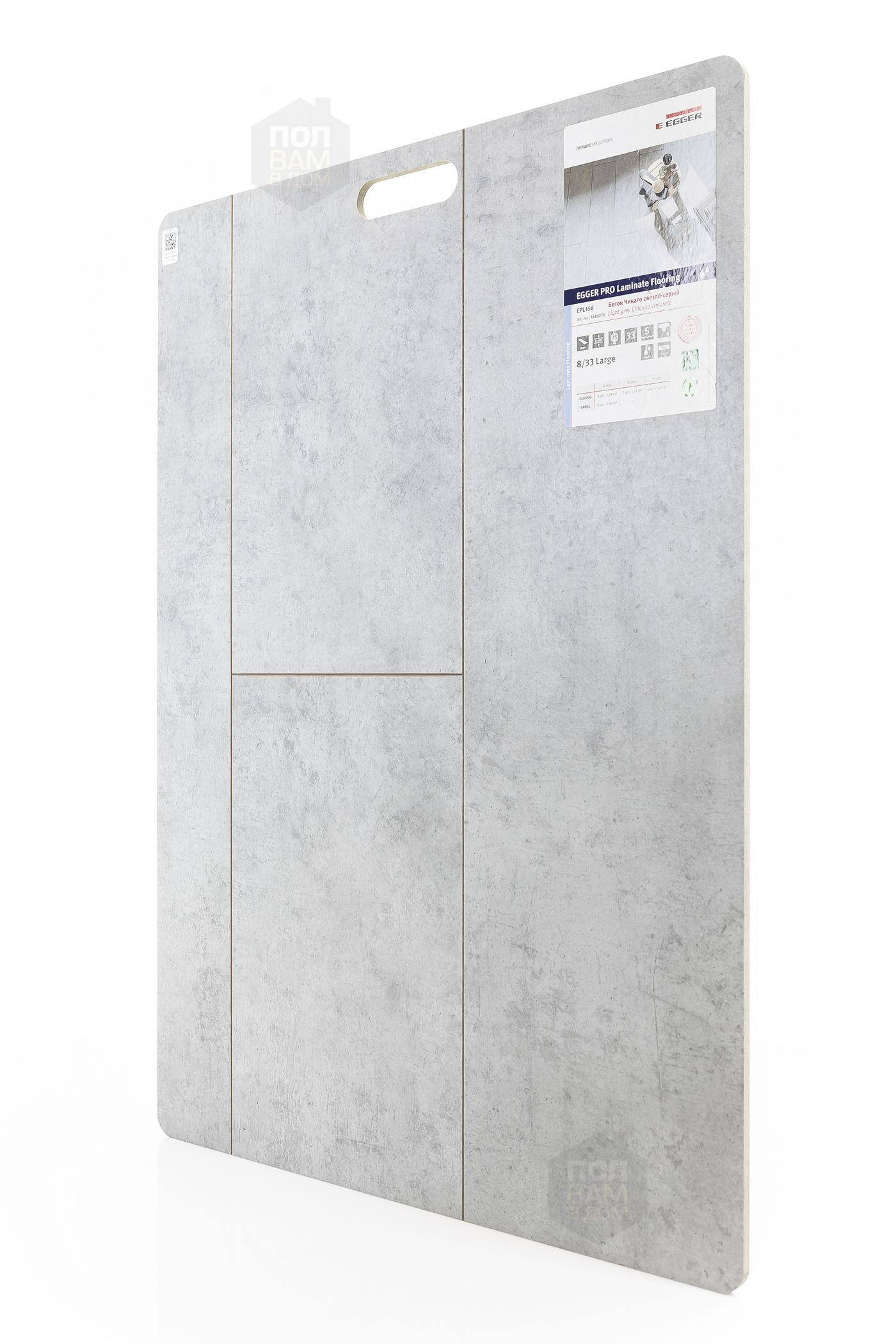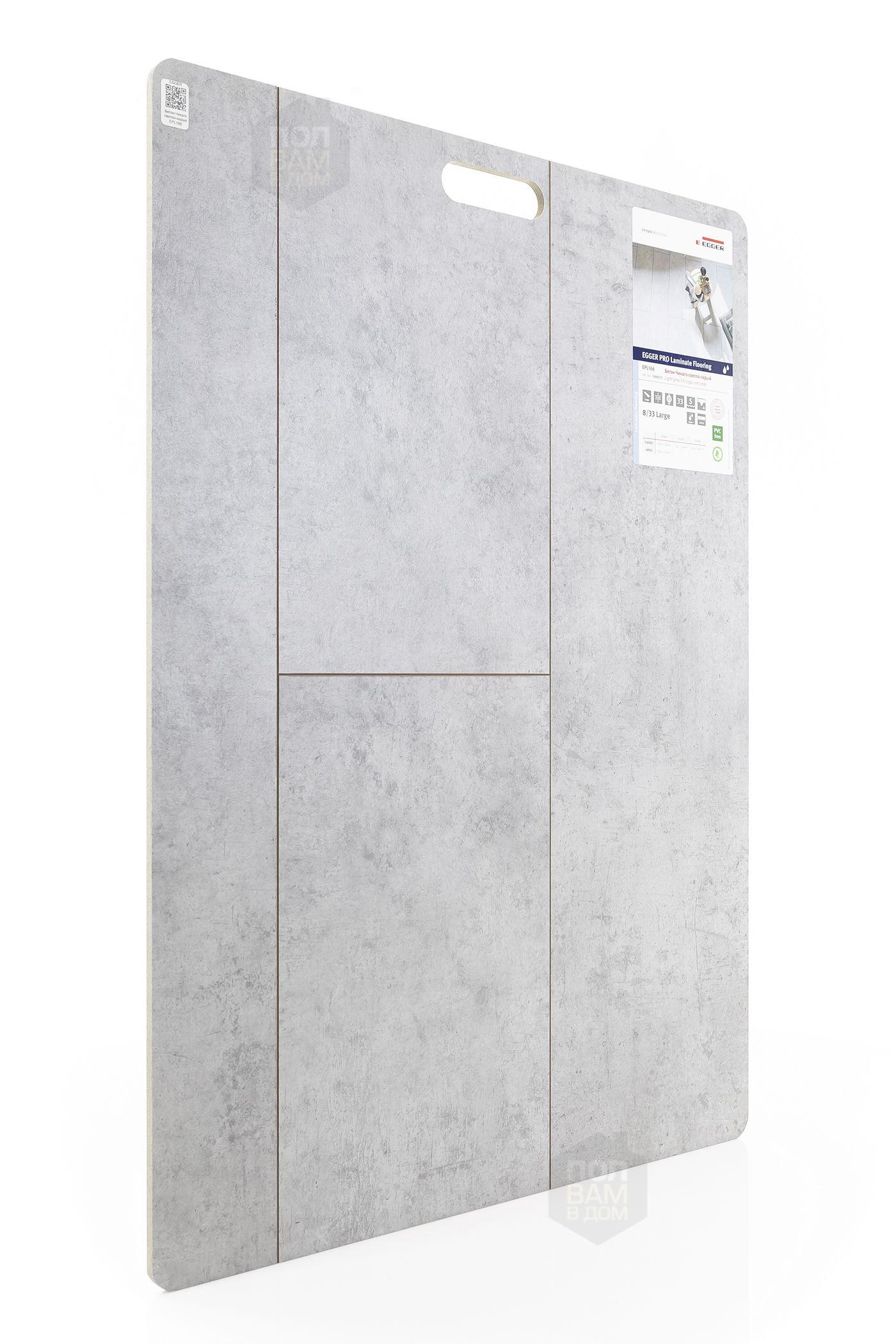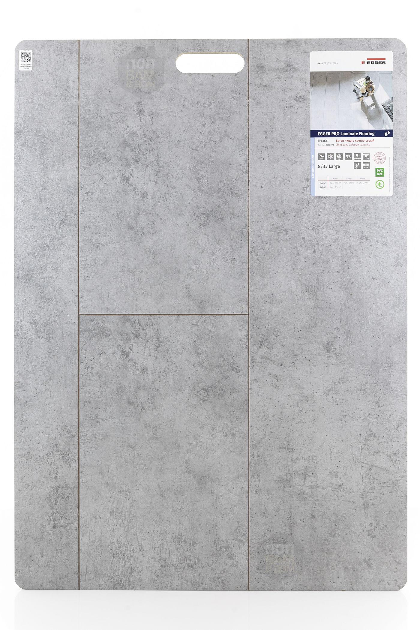 Ламинат EGGER Бетон Чикаго светло-серый EPL166 - цена 1 850 руб. за квадратный метр. Это покрытие толщиной 8 мм, фаска с 4-х сторон. Брашированная поверхность ламината имеет светлый оттенок и матовый блеск. Для того, чтобы купить в Санкт-Петербурге ламинат из коллекции EGGER Large 8/33 Aqua+ Бетон Чикаго светло-серый EPL166, положите товар в корзину или свяжитесь с нами любым доступным способом. Товар есть в наличии.