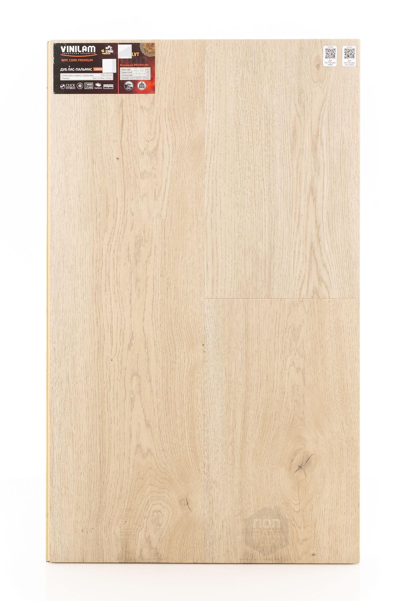 SPC ламинат Vinilam Дуб Лас-Пальмас 33606 - цена 4 299 руб. за квадратный метр. Это покрытие толщиной 8 мм, порода дерева - дуб, фаска с 4-х сторон. Брашированная поверхность SPC ламината имеет светлый оттенок и матовый блеск. Для того, чтобы купить в Санкт-Петербурге SPC ламинат из коллекции Vinilam Cork Premium Дуб Лас-Пальмас 33606, положите товар в корзину или свяжитесь с нами любым доступным способом. Товар есть в наличии.