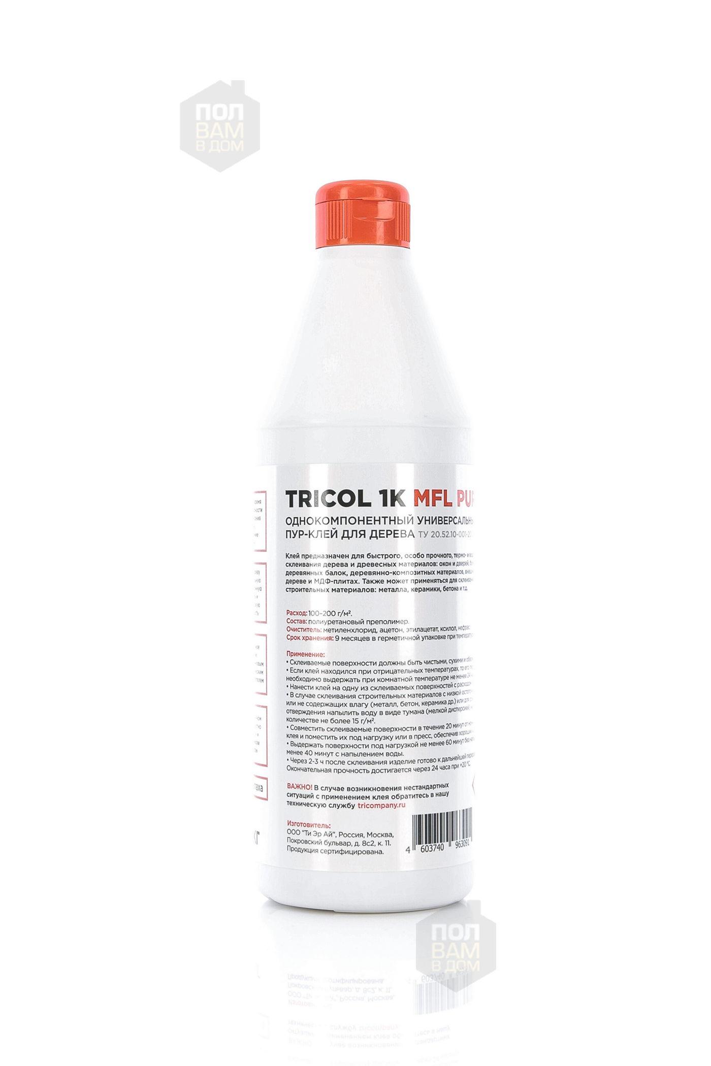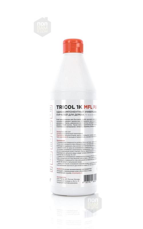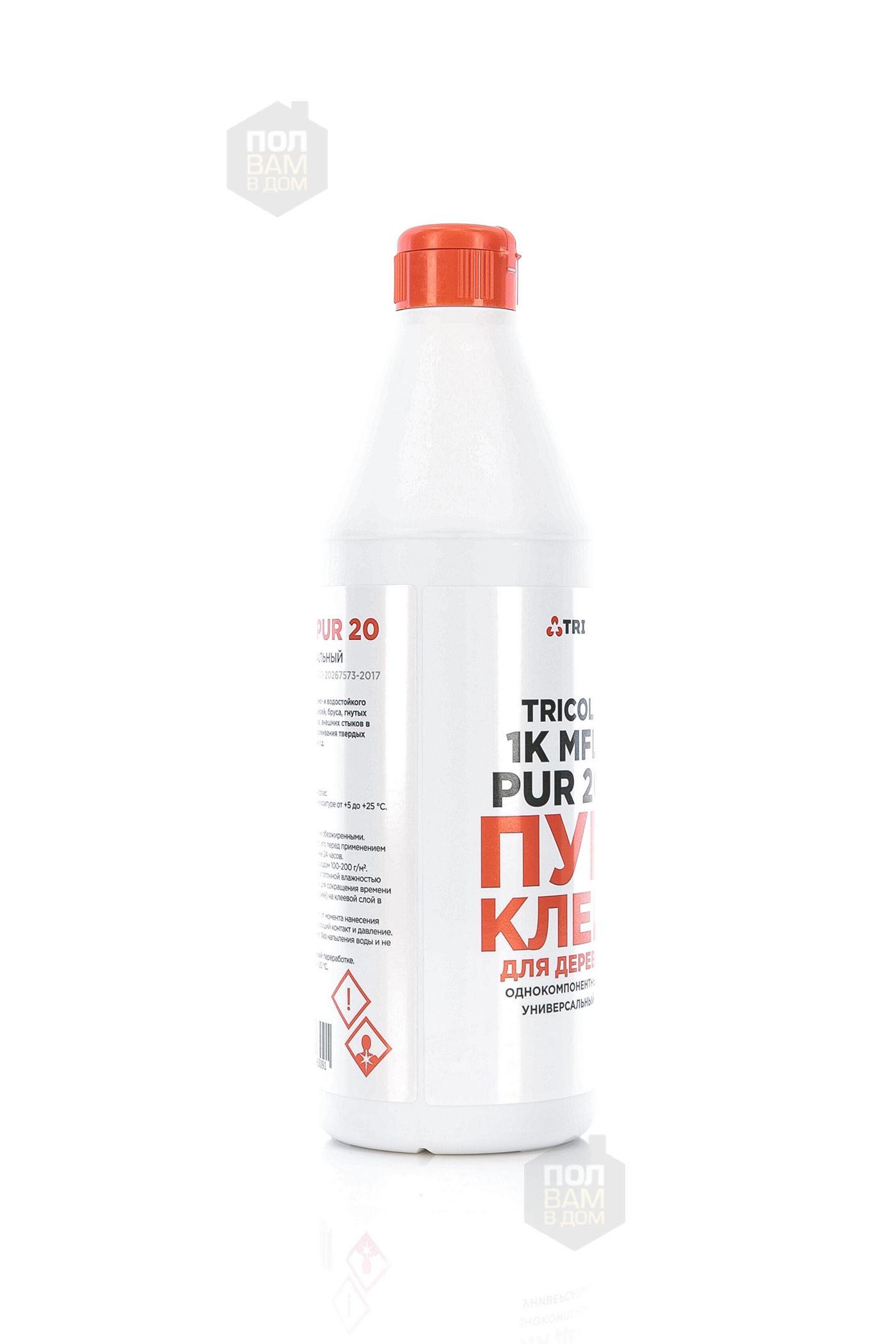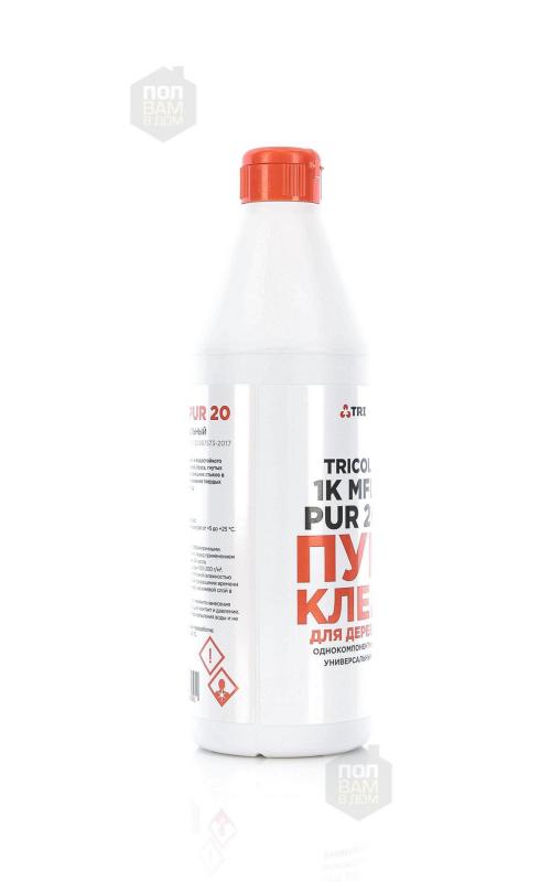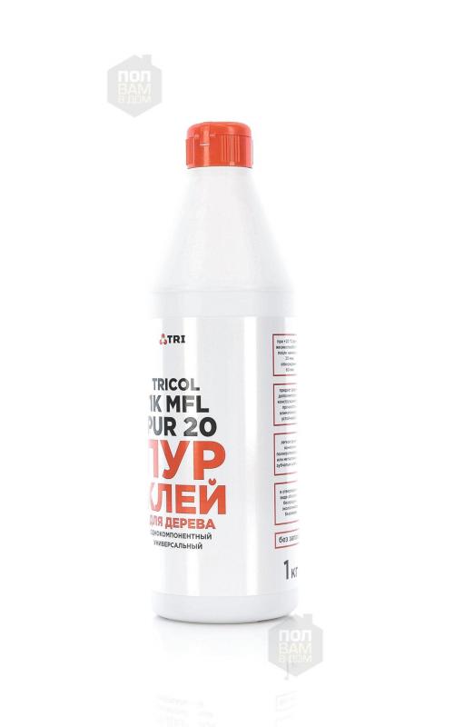 Клей для дерева TRICOL 1K MFL PUR 20 - однокомпонентный универсальный полиуретановый клей для дерева. Предназначен для быстрого, особо прочного, термо- и водостойкого склеивания дерева и древесных материалов: окон и дверей, бруса, гнутых деревянных балок, деревянно-композитных материалов, внешних стыков в дереве и МДФ-плитах.