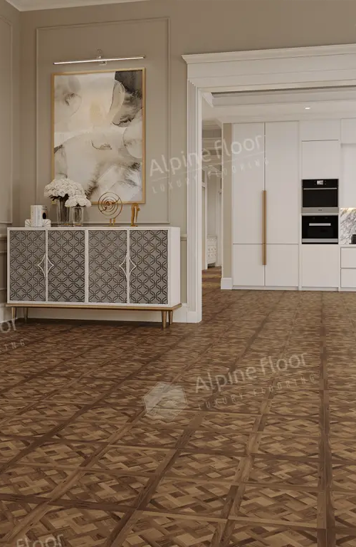 Кварц виниловый ламинат Alpine floor (Германия) - выпускается под торговой маркой немецкого одноименного концерна, датой основания которого является 2003 год. На Российский рынок компания вышла в 2013 году, представив на официальном сайте широкий ассортимент напольных покрытий в категории кварцвиниловой плитки, которая быстро стала популярной новинкой благодаря своим исключительным пользовательским характеристикам. В 2014 году, компания разработала технологию синхронного тиснения поверхности, что позволило придать структуре плитки рисунок, идентичный дереву (ясень, дуб, клен, акация и т.д.). Кварцвиниловая плитка выгодно отличается своей практичностью, эстетичностью, уникальными тепло, звуко и ударопрочными свойствами. Абсолютно влагостойкое напольное покрытие, пригодное для использования в ванных комнатах и других зонах с повышенной влажностью. Пригоден для использования совместно с системами тёплого пола. Гарантия для использования в жилых помещениях - 25 лет.