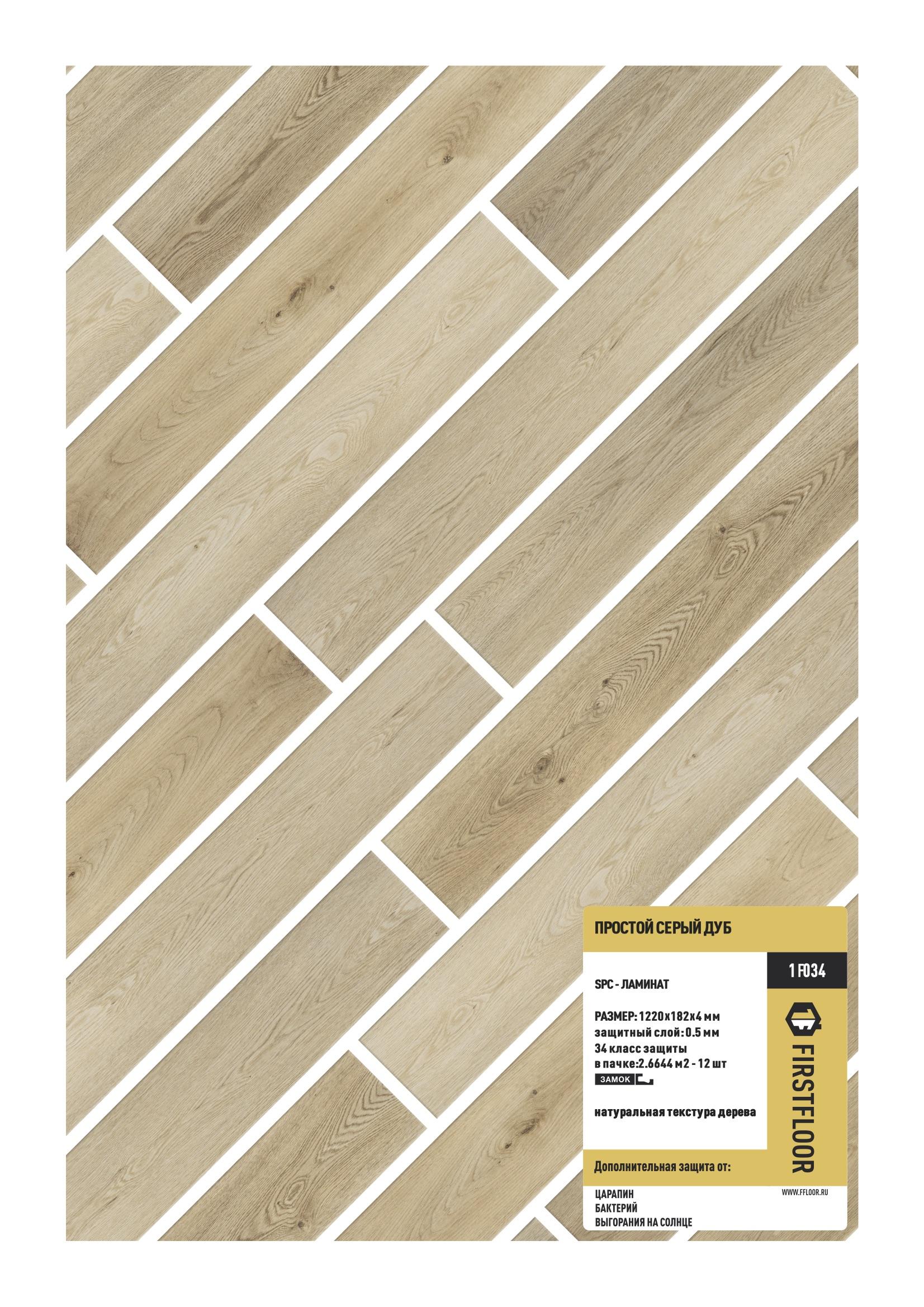SPC ламинат FirstFloor Простой серый дуб 1F034