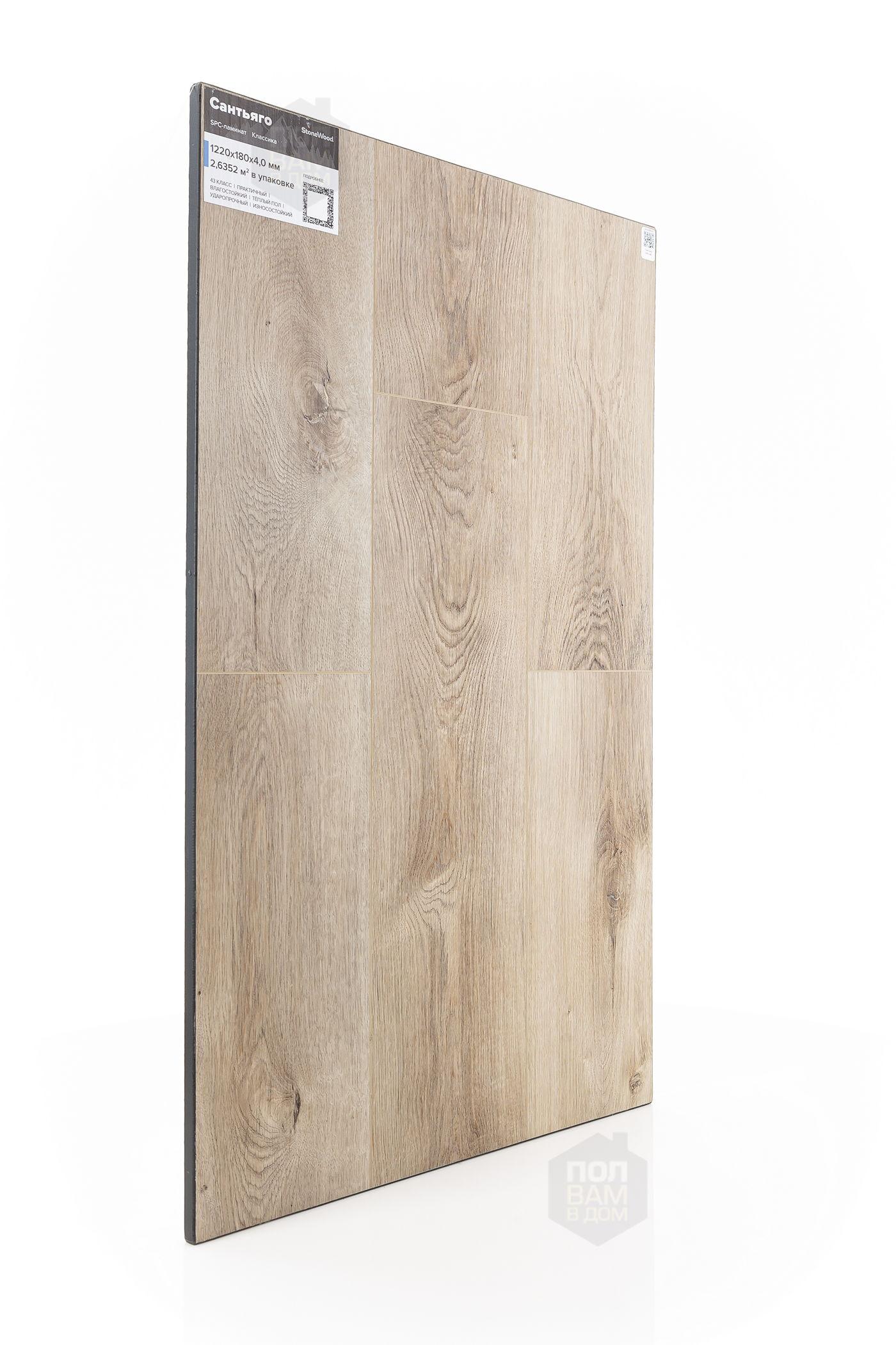SPC ламинат StoneWood Сантьяго SW1040 - цена 2 399 руб. за квадратный метр. Это покрытие толщиной 4 мм, порода дерева - дуб, фаска с 4-х сторон. Брашированная поверхность SPC ламината имеет светлый оттенок и полуматовый блеск. Для того, чтобы купить в Санкт-Петербурге SPC ламинат из коллекции StoneWood Классика Сантьяго SW1040, положите товар в корзину или свяжитесь с нами любым доступным способом. Товар есть в наличии.