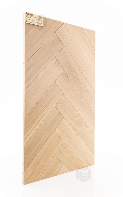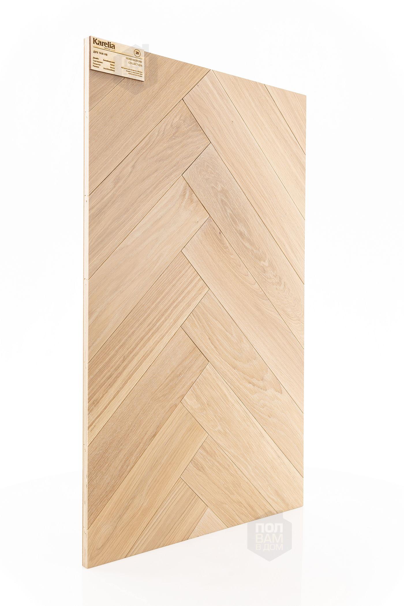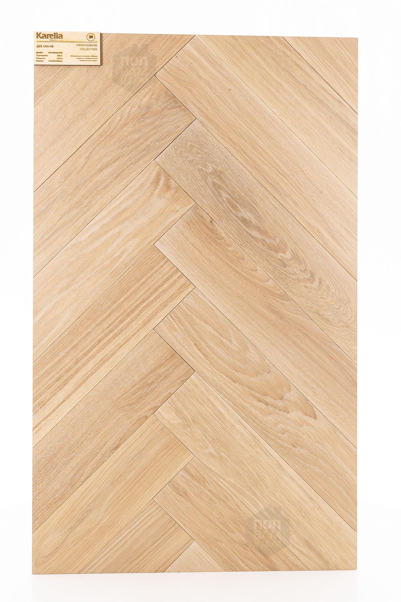 Инженерная доска Karelia Дуб Tan HB - цена 7 900 руб. за квадратный метр. Это покрытие толщиной 14 мм, порода дерева - дуб, сортировка - натур, фаска с 4-х сторон. Брашированная поверхность инженерной доски имеет светлый оттенок и матовый блеск. Для того, чтобы купить в Санкт-Петербурге инженерную доску из коллекции Karelia Herringbone Дуб Tan HB, положите товар в корзину или свяжитесь с нами любым доступным способом. Товар есть в наличии.