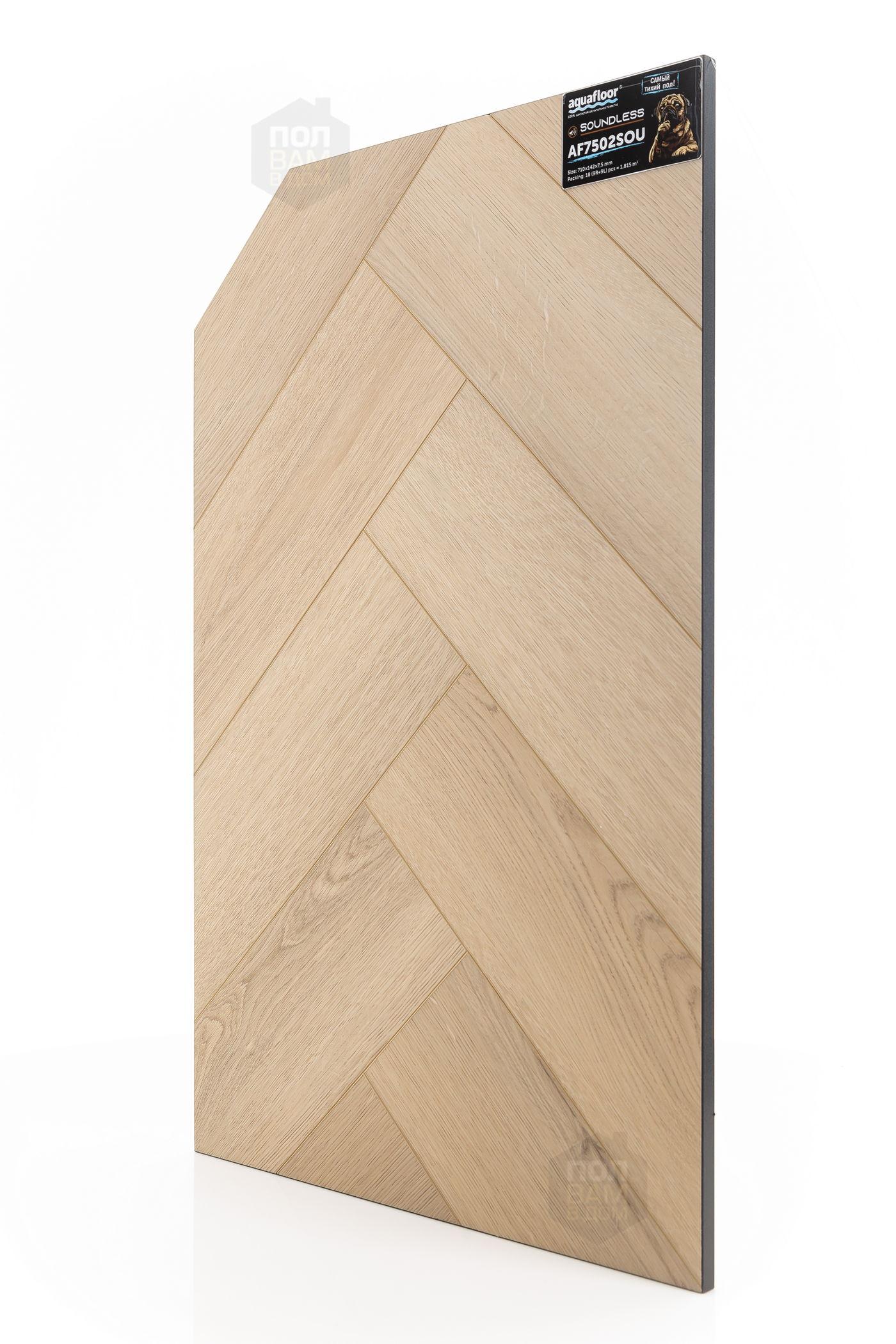 SPC ламинат Aquafloor AF7502SOU - цена 6 400 руб. за квадратный метр. Это покрытие толщиной 7,5 мм, порода дерева - дуб, фаска с 4-х сторон. Брашированная поверхность SPC ламината имеет светлый оттенок и матовый блеск. Для того, чтобы купить в Санкт-Петербурге SPC ламинат из коллекции Aquafloor Soundless AF7502SOU, положите товар в корзину или свяжитесь с нами любым доступным способом. Товар есть в наличии.