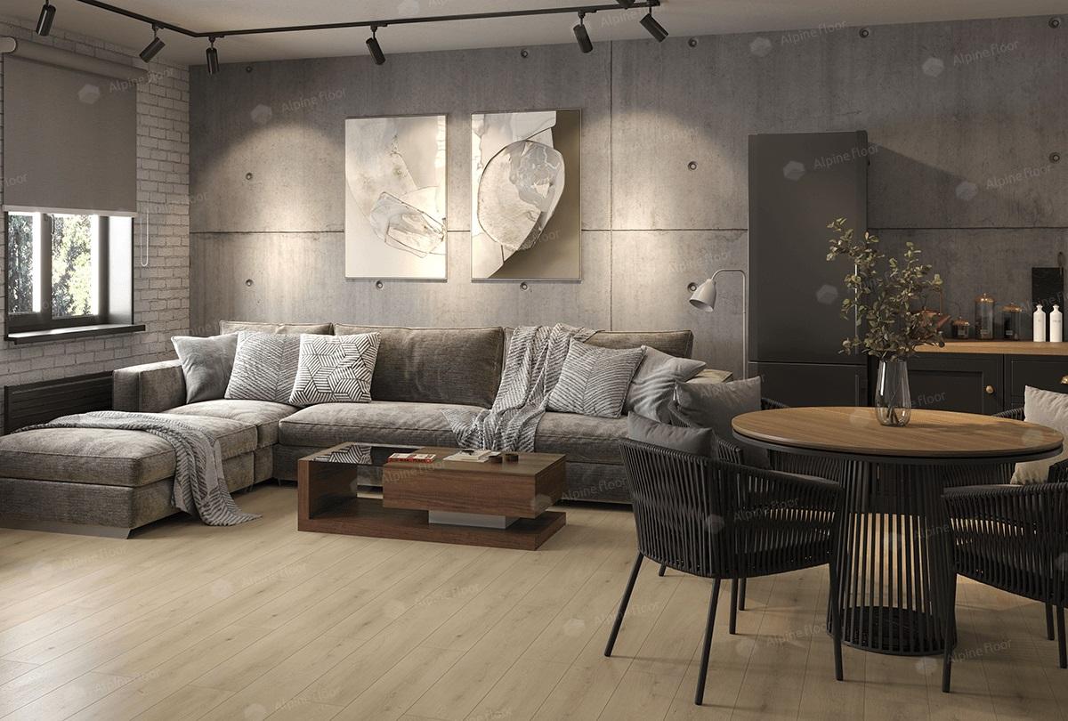 Кварц виниловый ламинат Alpine floor (Германия) - выпускается под торговой маркой немецкого одноименного концерна, датой основания которого является 2003 год. На Российский рынок компания вышла в 2013 году, представив на официальном сайте широкий ассортимент напольных покрытий в категории кварцвиниловой плитки, которая быстро стала популярной новинкой благодаря своим исключительным пользовательским характеристикам. В 2014 году, компания разработала технологию синхронного тиснения поверхности, что позволило придать структуре плитки рисунок, идентичный дереву (ясень, дуб, клен, акация и т.д.). Кварцвиниловая плитка выгодно отличается своей практичностью, эстетичностью, уникальными тепло, звуко и ударопрочными свойствами. Абсолютно влагостойкое напольное покрытие, пригодное для использования в ванных комнатах и других зонах с повышенной влажностью. Пригоден для использования совместно с системами тёплого пола. Гарантия для использования в жилых помещениях - 25 лет.